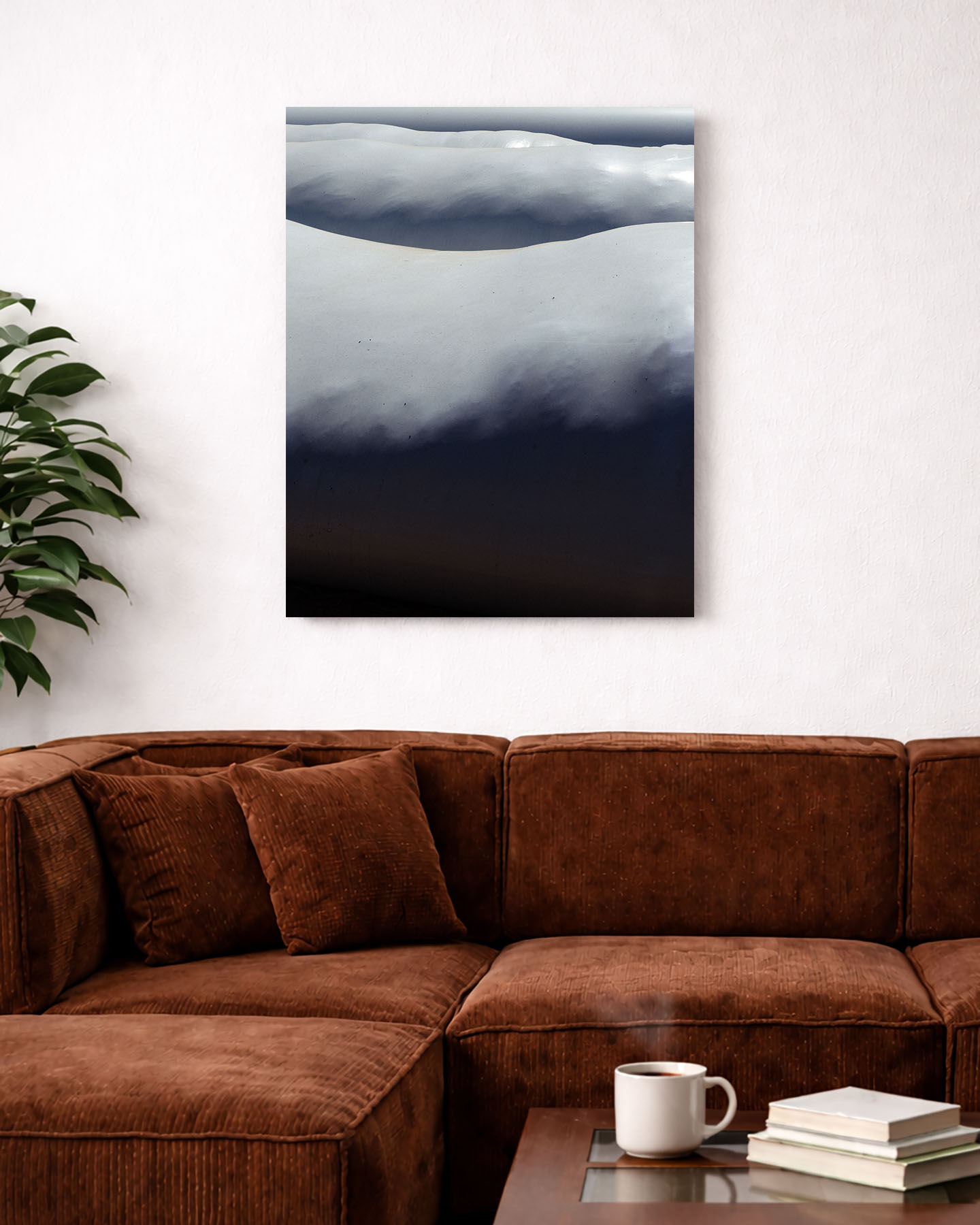 Capas de plástico protegiendo la tierra que parecen olas blancas. Líneas suaves y luz serena para añadir calma y elegancia a tu espacio.